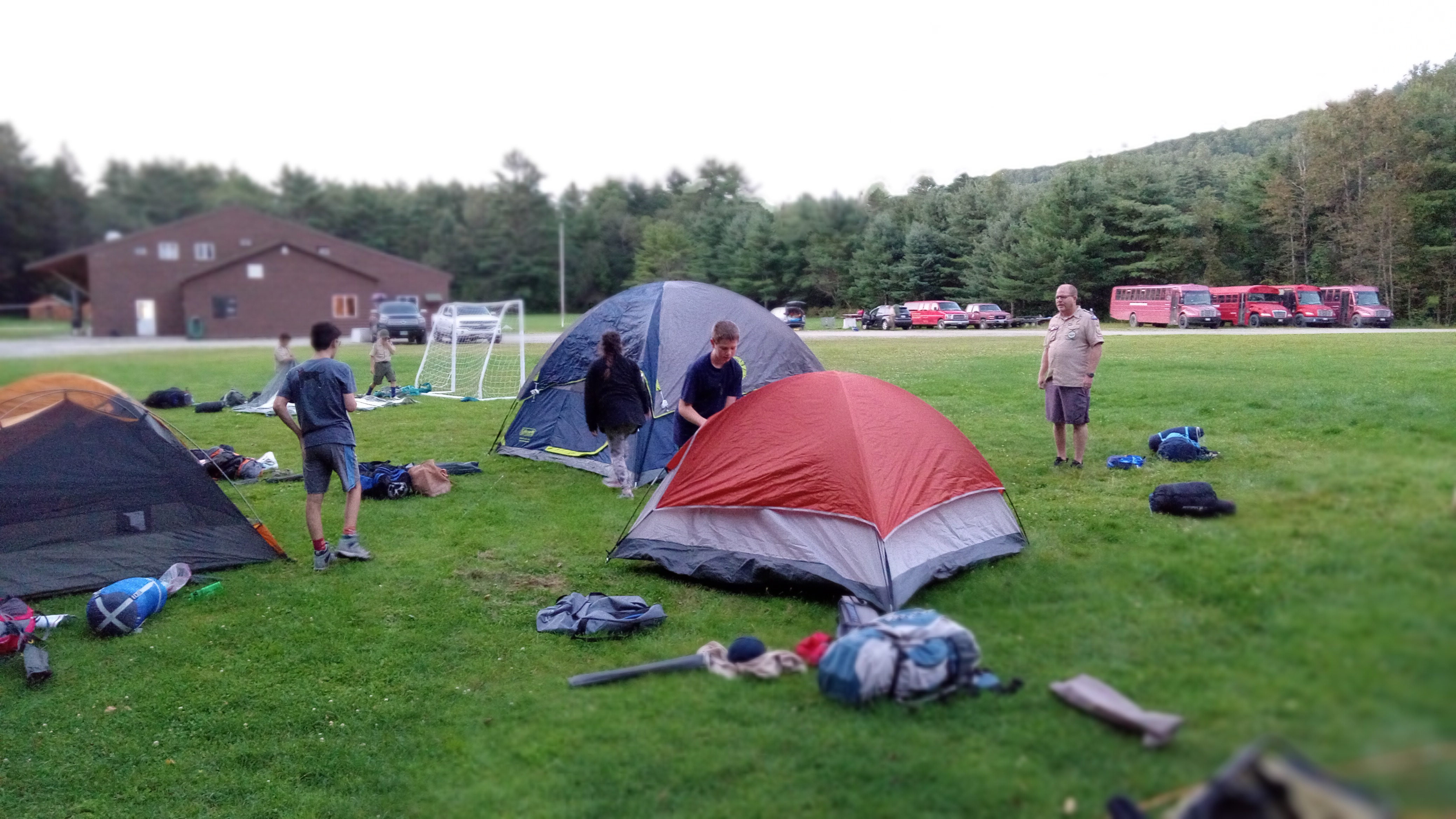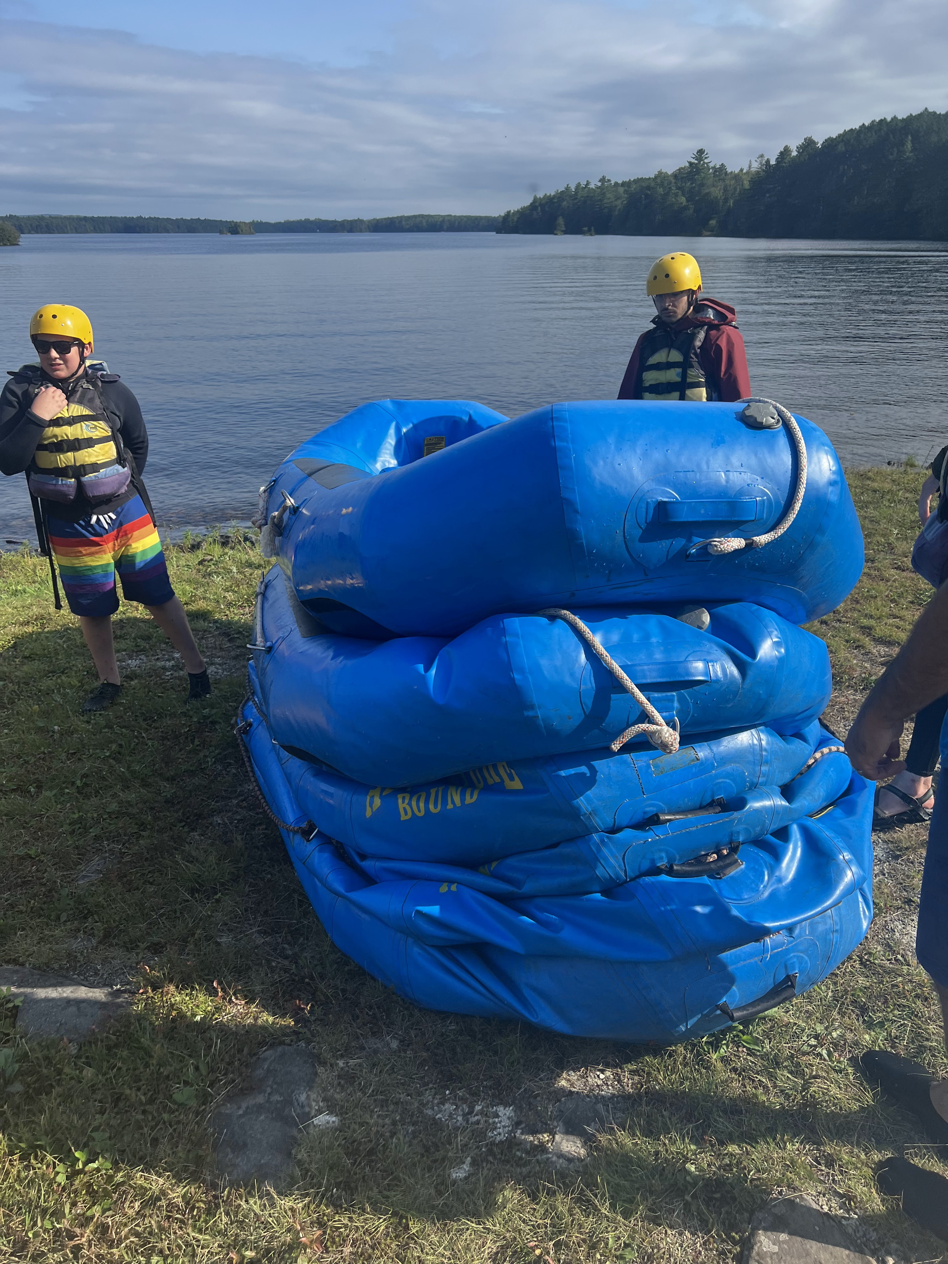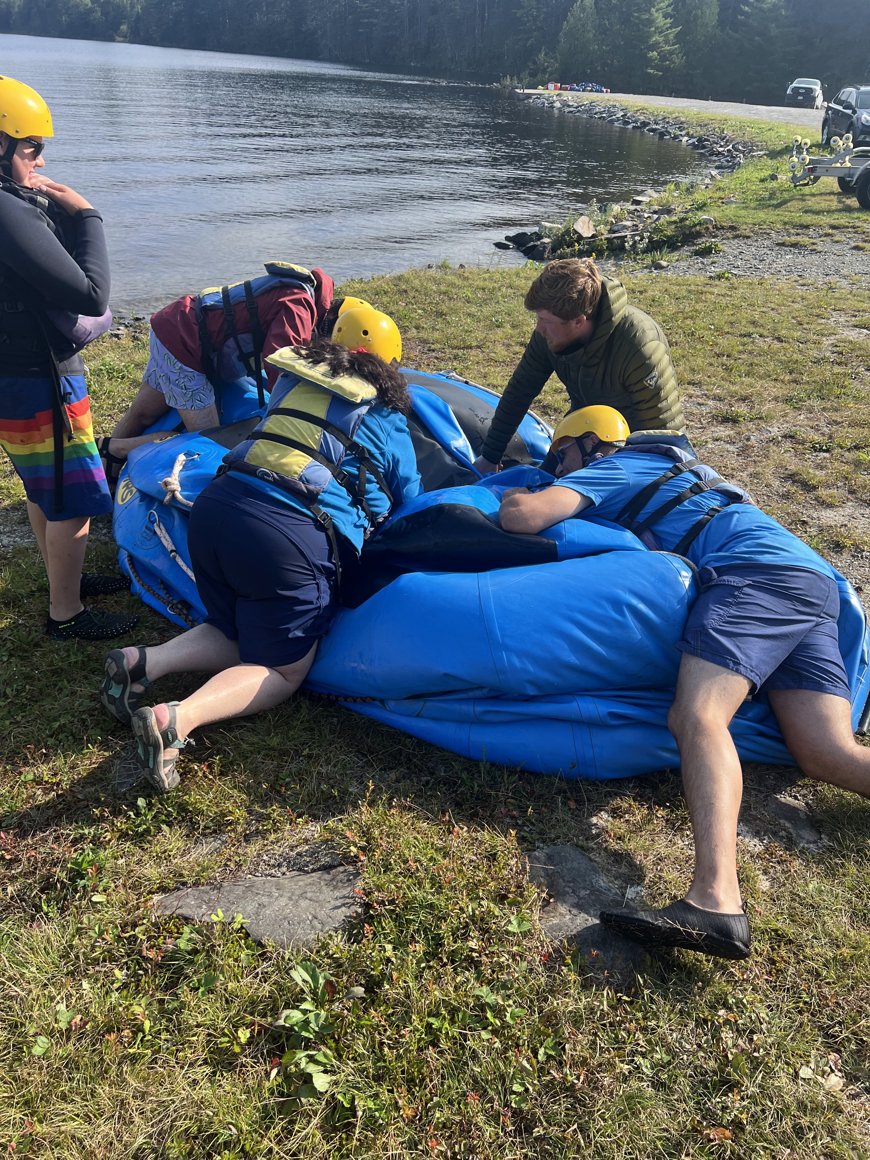 Each Labor Day, the troop has an adventure trip for its more experienced scouts who are seeking a challenge. These scouts camped out in a Maine field, learned how to paddle on smaller rapids in self-guided boats, and camped overnight at a rustic site on Indian Pond. From there they boated to the Harris Station Dam and carried bigger boats to the head of the Kennebec River. From there they were guided through Class II and Class III and one Class IV rapids, and they swam through Class I rapids toward the end of the trip. Some even took kayaks out to paddle the rapids themselves.