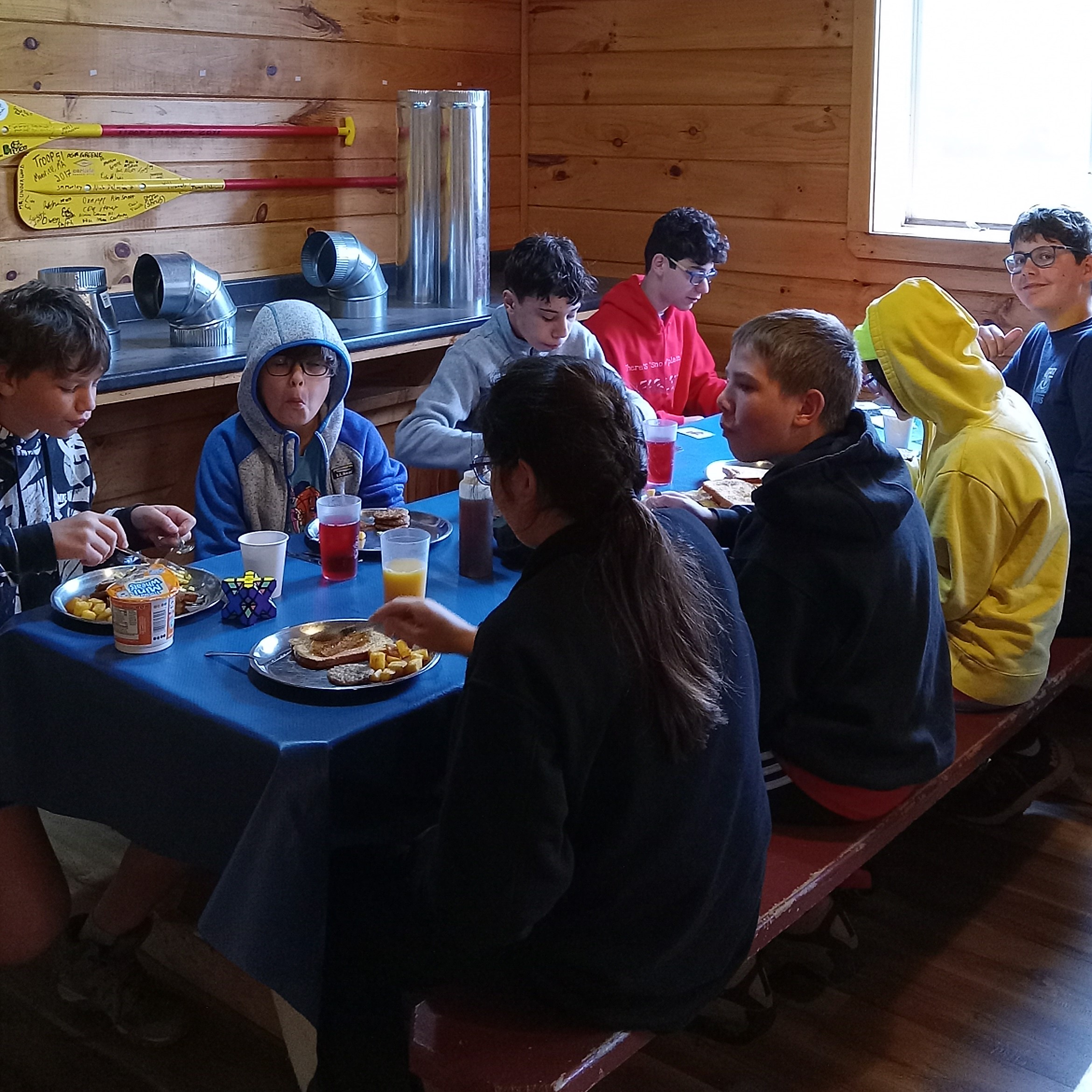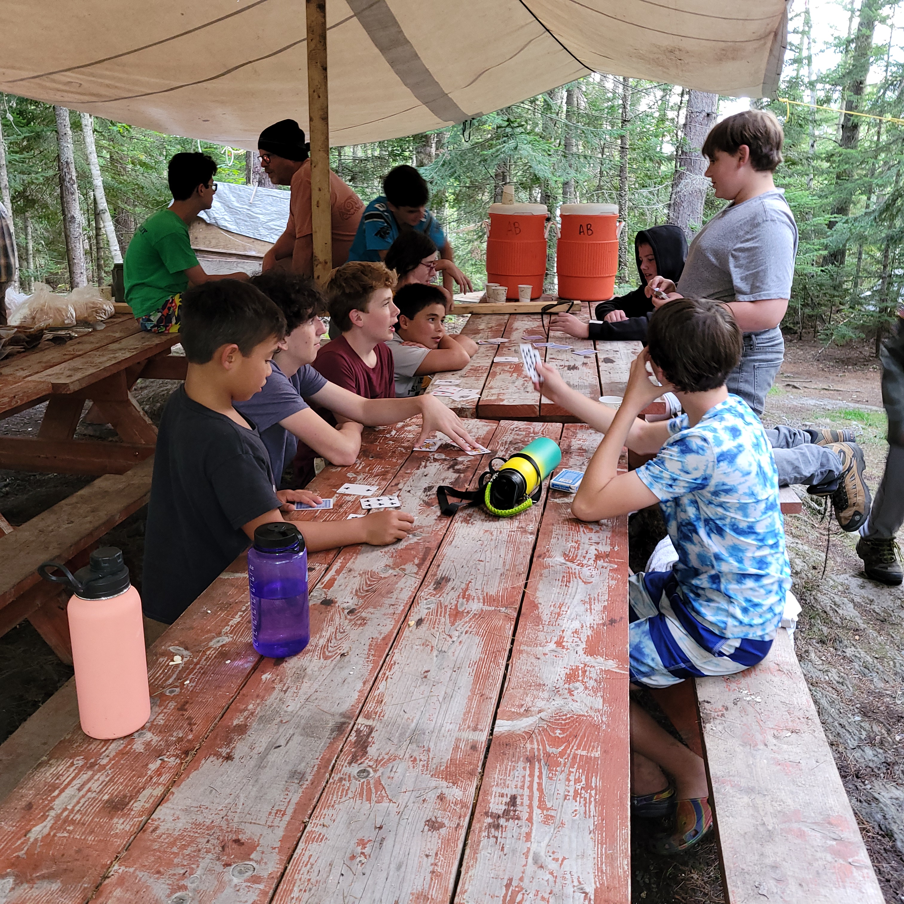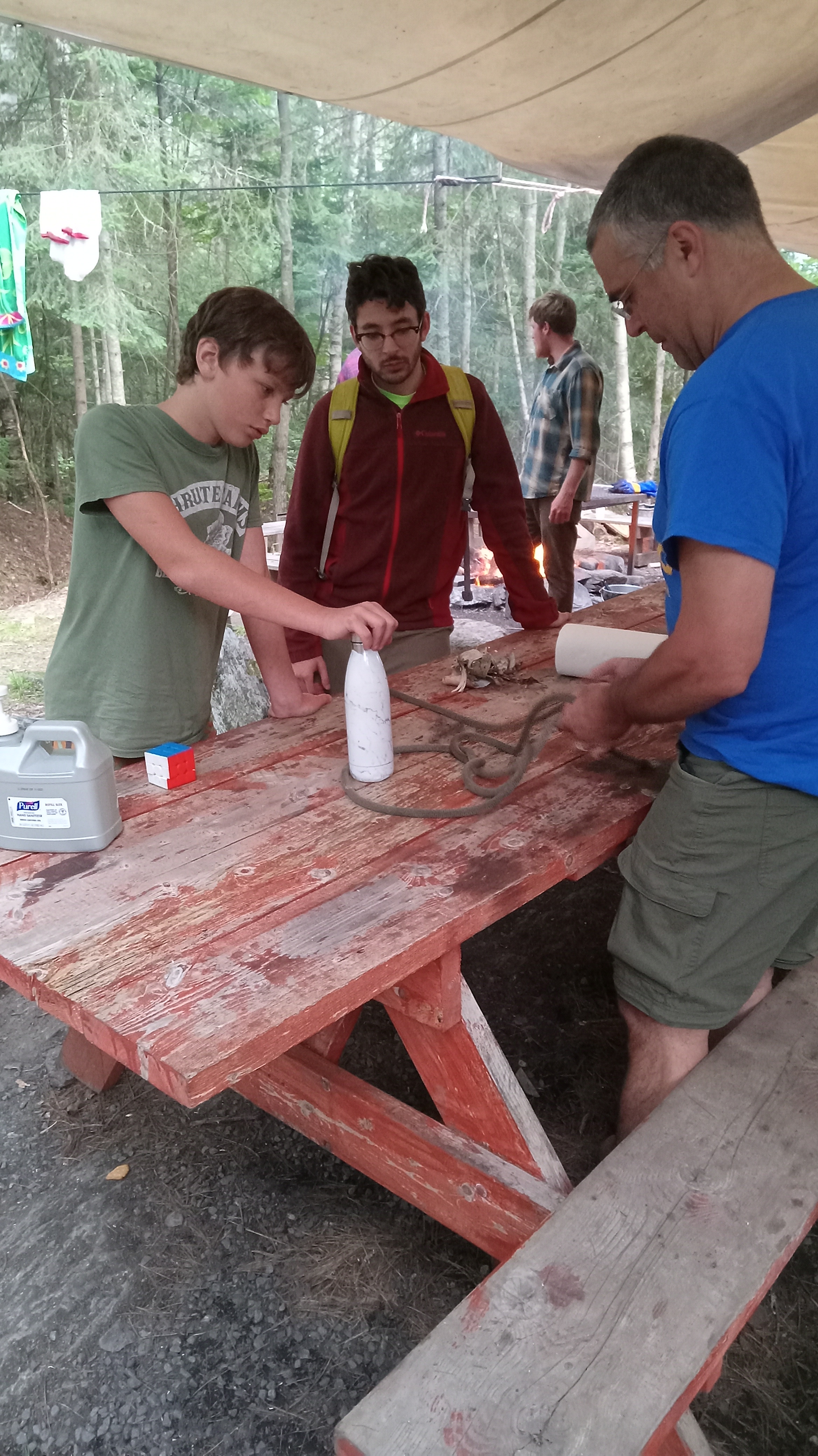 Each Labor Day, the troop has an adventure trip for its more experienced scouts who are seeking a challenge. These scouts camped out in a Maine field, learned how to paddle on smaller rapids in self-guided boats, and camped overnight at a rustic site on Indian Pond. From there they boated to the Harris Station Dam and carried bigger boats to the head of the Kennebec River. From there they were guided through Class II and Class III and one Class IV rapids, and they swam through Class I rapids toward the end of the trip. Some even took kayaks out to paddle the rapids themselves.